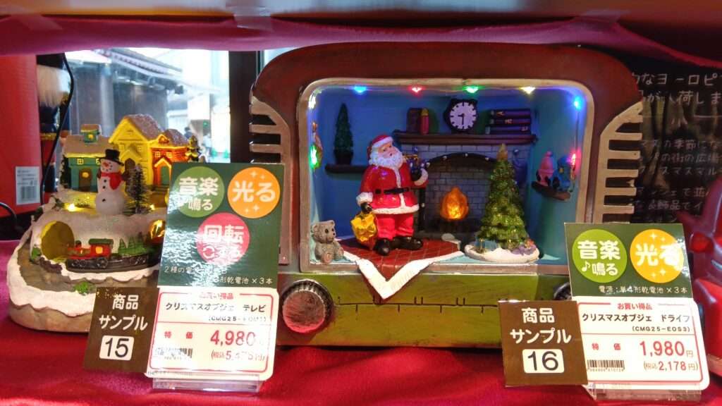 昨日所用があって蒲田まで出かけたのですが、蒲田には何店舗もある駅前のユザワヤにクリスマスグッズが大量に並んでいました。今のオブジェ?は光って回って音が出る物が当たり前で見ていても飽ないものばかりです。時計台の下からサンタが出て来るものやサンタがピアノを弾いてピアノの上の街の景色が光る物など大人になっても癒されるものが沢山ありました。年に一度しか使わないのは判っているのについついランタンを買ってしまいました。