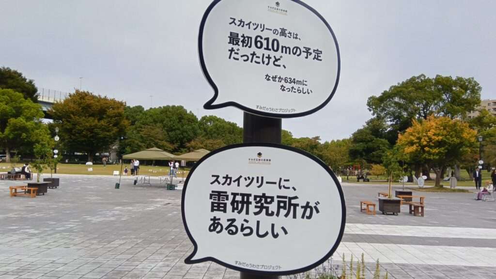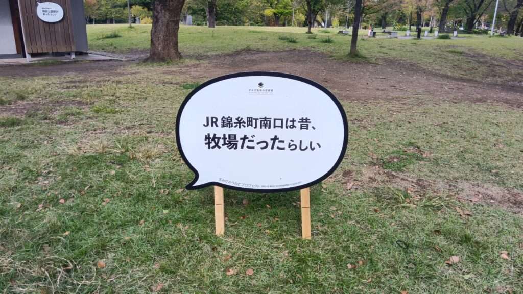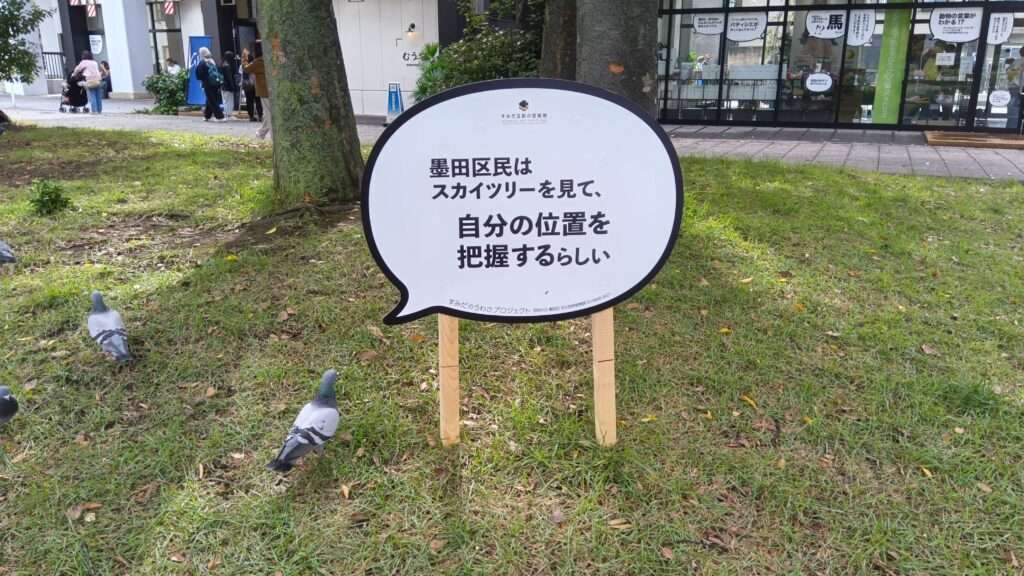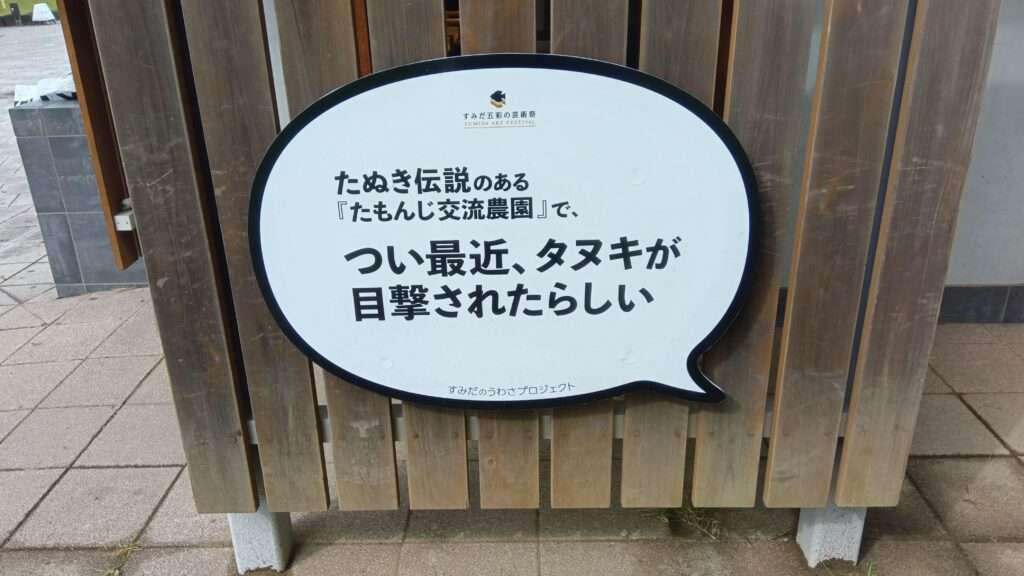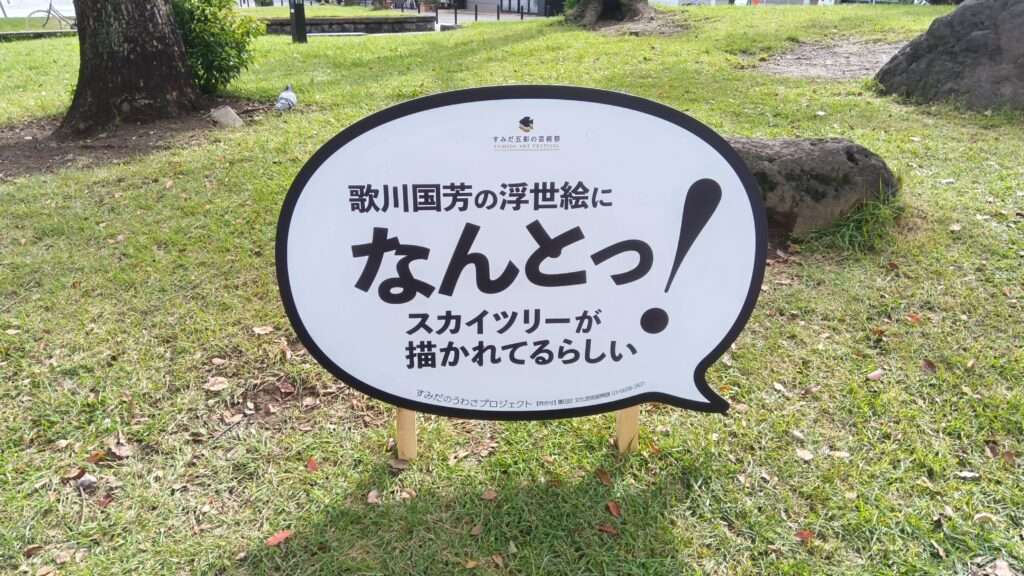 向島の隅田公園で「すみだのうわさプロジェクト」展示中です。2026年開催の「すみだ五彩の芸術祭」の関連企画で、すみだの歴史や文化を「うわさ」風にまとめフキダシ型にしてゆくアートプロジェクトで隅田公園や隣接店舗になんと100以上もあるそうです。読むとついつい調べたくなってしまう話題が沢山有りました。錦糸町の駅前には「野菊の墓」の作者、伊藤左千夫が牛乳を売るため建てた牧舎跡地の碑があるし、国芳の浮世絵「東都三ツ股の図」は以前よく例のミステリ―雑誌で見ていたのを覚えています。ゆっくり気になるフキダシを見つけるのも面白いかも・・。