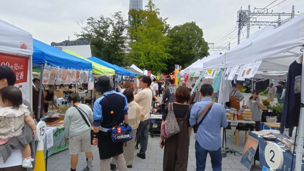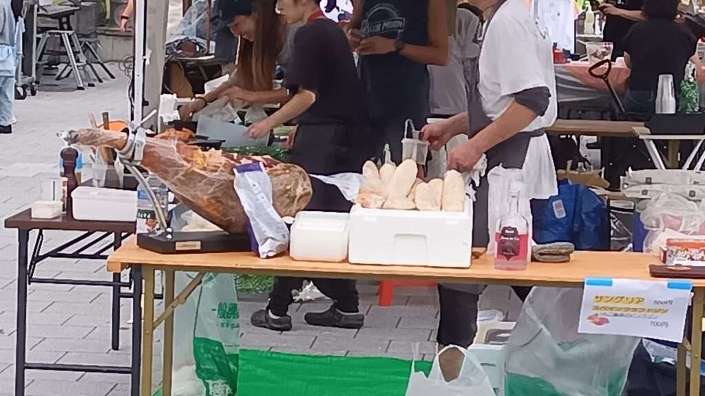 初日は雨で寂しかった「すみだパークシネマフェスティバル」も昨日今日は降られず沢山の人が来場していました。私が訪問時は、若い女の子たちの「cheer beauty style」がダンスパフォーマンス中でした。この後も17時30分からの映画上映まで3組のアーティストの出演があるそうです。出店しているお店もみんな専門店なので見慣れた屋台とは違っていて楽しかったです。なんと生ハムの原木を切り売りしている店も・・。和菓子屋さんが出しているお店の出来立てのみたらし団子の誘惑に勝てませんでした。「この世界の片隅に」上映は19時からです。