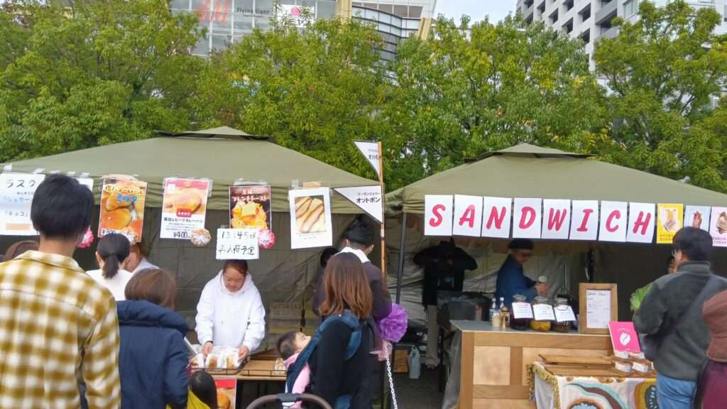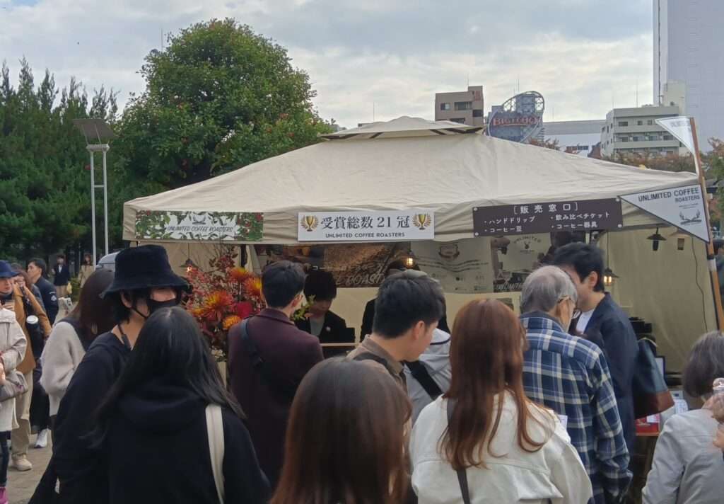 墨田区錦糸公園で今日8日から「すみだコーヒーフェスティバル2025・秋」開催しました。「コーヒーからすみだを旅する」をテーマに東東京を中心に人気のロースタリーやカフェ約30店が出店、色々な風味のコーヒーの飲み比べができます。同時に墨田区商店街の美味しいパン屋さん10数件が出店する「ソラのねマルシェ」も開催されているので美味しいコーヒーで好みのパンを味わえます。私が訪問時はお昼過ぎでどのお店にも沢山の行列が出来ていて早くも売り切れのお店もある程だったためコーヒ―は諦め「サンドグルマン」のローストビーフサンドでお昼にしました。コーヒーフェスティバルは9日までの開催。