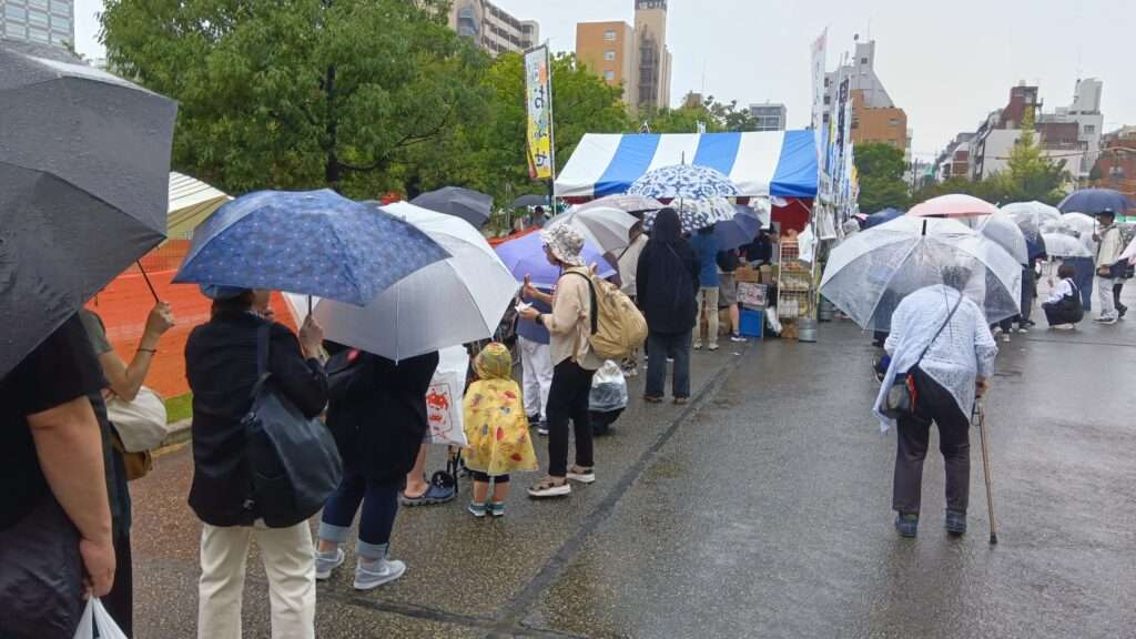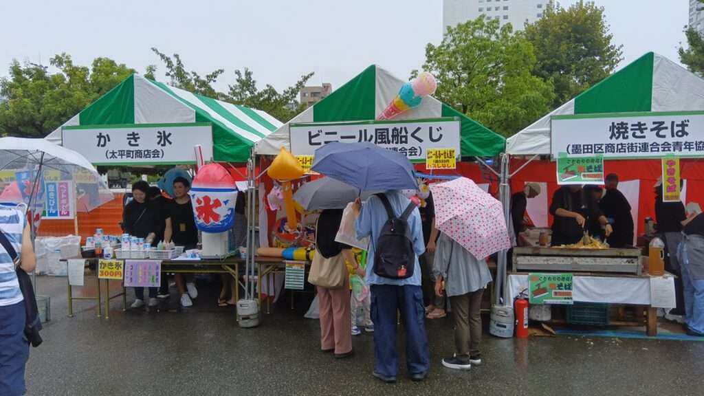 墨田区錦糸公園とひがしんアリーナで第50回すみだ祭り、55回こども祭りが開催中です。あいにくの雨だったにも拘らず沢山の来場者がありました。こども祭りはアリーナ内で家族連れが楽しめるイベントブースが並んでいて、外のふれあい広場では、地元の商店会や有志の模擬店や各地方からの物産展が出店がありました。中でも信州小布施の焼き栗がひときわ長い行列を作っていたのですかさず並んで買ってしまいました。スタッフ曰く地元でも目の前で焼く栗に行列が絶えないのだそうです。ぜひ焼き立てをと言うことで早速頂いてみました。味付無しなのにメチャ甘くて美味しかったです。両おまつりは5日まで。