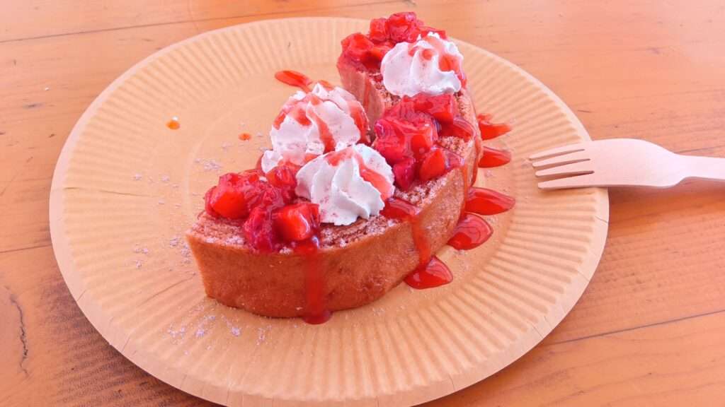 東京ソラマチ4Fスカイアリーナで「ストロベリー&チョコレートフェス」開催中です。バレンタインに合わせて?いちごとチョコレートのスイーツが沢山ありました。いちごのフレンチトースト、手作りバームクーヘン、ベルギーチョコワッフルなどのスイーツ、飲み物はホットいちごミルクやいちごのホットワインもありました。、今日はとても寒かったのでホットワインが欲しかったところですが、昼間なので気になっていた手作りのいちごバームクーヘンを戴いてみました。生のいちごのソースとあまり甘くないバームクーヘンがよく合って非常に美味しかったです。フェスは当然ですが2月15日まで。