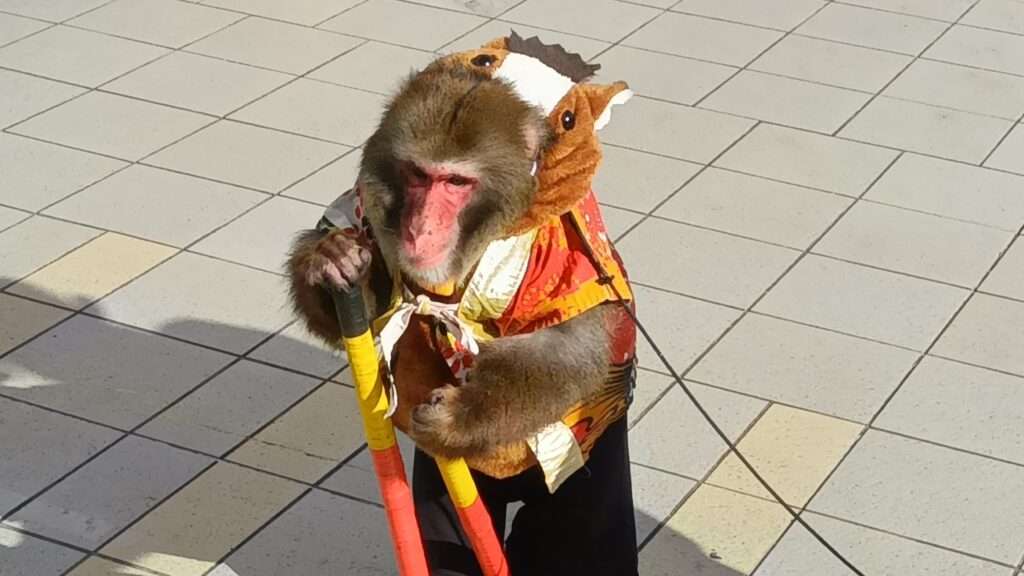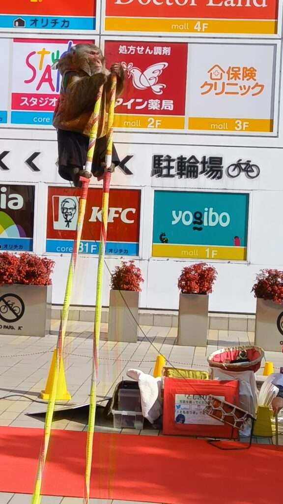 太平町の錦糸町オリナスモール1F正面広場で日光猿軍団の「猿回し」公演中です。お猿の「りき君」は現在15歳のベテランであと数ヶ月で引退になるそうなので今回は貴重な出演かも。猿使いの人との掛け合いも面白く、「6歩前に出て、2歩下がって、左見て」などの言葉を完全に理解している様子でした。とにかく笑いの絶えない30分で気が付くと夢中で拍手をしていました。猿回しは17日、18日の2日間17時までお猿さんの体調を見ながら1時間に1回位のペースで行われます。