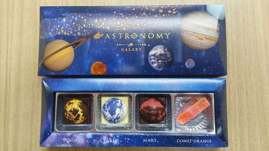 明日はバレンタインデーなので錦糸町マルイに行ってみました。今年は1F催事場に9店もチョコレートメーカーが出店してました。「京都ふらんすや」の新作?ナマケモノ~んや本格ベルギー高級チョコの「ダルシー」、人生の鍵となる日のために食べてほしい鍵型をした「キャギドレーブ」、定番のポケモンキャラのチョコなど色々ありました。特に気になった神秘的な惑星のきらめきをイメージしたという「アストロノミー」というブランドを購入してみました。ちゃんと写真で見る火星、金星、地球の色のセットでした。もちろん特別販売は明日までです。