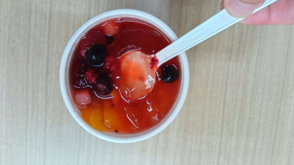 錦糸町マルイ1Fで本日から台湾ごはんのお店が出店しています。台湾鉄道弁当や定番のルーローハン、角煮丼、台湾ドリンクなど、香辛料を使わない優しい味が特徴だそうです。中でも前から気になっていた、台湾では定番のスイーツ「愛玉子(おーぎょうちぃ)」を食べてみました。台湾に自生するつる性植物の種から作られるゼリーだそうで、本体には味がないのでシロップなどでたべるのが一般的らしいです。私はミックスベリーとタピオカ、マンゴーをトッピングしてもらいました。匂いのないところてんの様でさっぱりしてとても美味しかったです。リピート決定ですね。出店は29日まで。