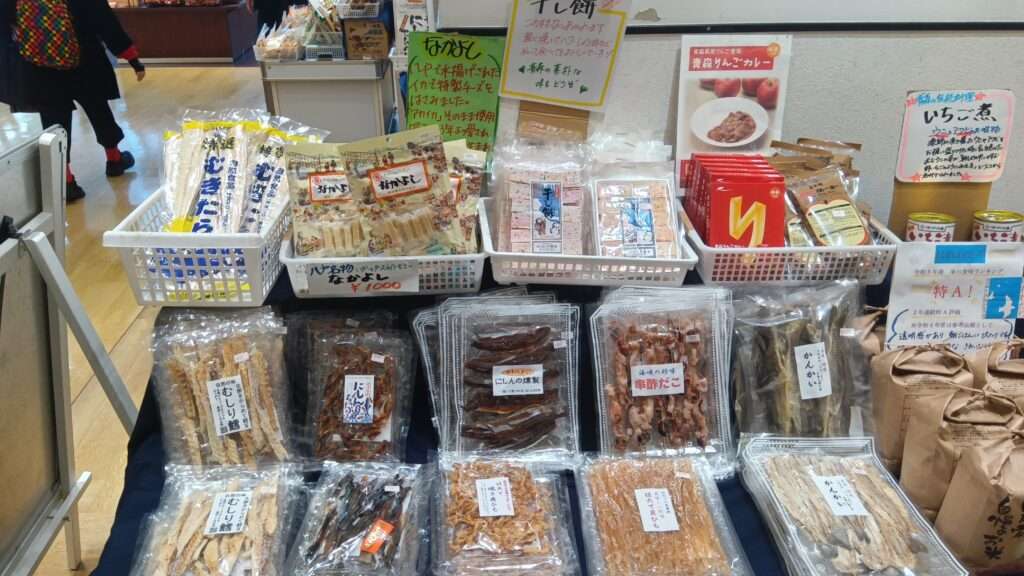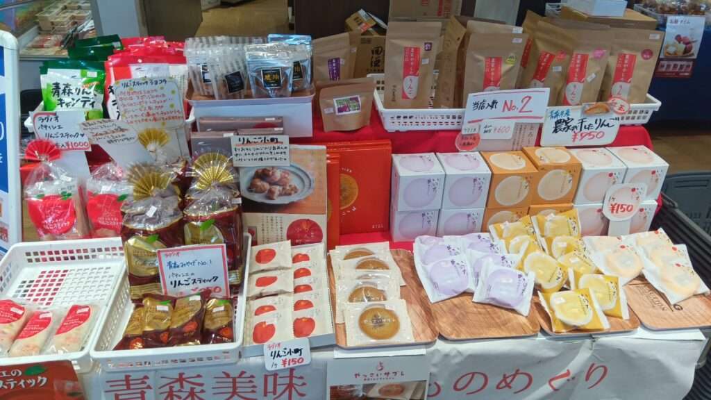 錦糸町マルイで青森物産展「美味しいものめぐり」開催中です。青森の農産物、海産物、人気のお菓子やつまみソウルフードなど100店を超す商品が売られています。写真は無いのですが、丸々とした大きなにんにくも沢山売られていました。青森産のにんにくはなんと国内生産の7割を占めるのだそうです。お土産人気NO.1に必ず名があがる、弘前ラグノオの「気になるリンゴ」は売り切れだったので同メーカーの「パティシエのりんごスティック」を買って食べてみました。さすが地元名産のりんごの良い香りのする甘さ控えめのアップルパイでした。物産展は12月15日までです。
